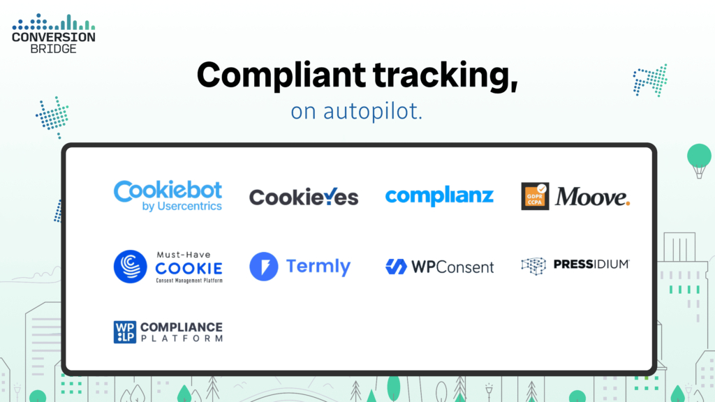 Cookie compliance sounds simple until you’re knee deep in consent categories and blocked scripts. (“What do you mean the Meta pixel fired before consent??”) Conversion Bridge integrates with 9 cookie consent platforms and handles all the script management automatically, no configuration nightmare required.