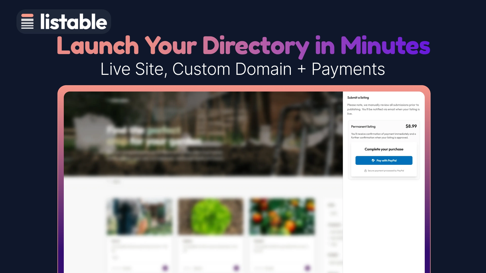 The best part? Listable comes with built-in payment processing so you can start making money from day one.