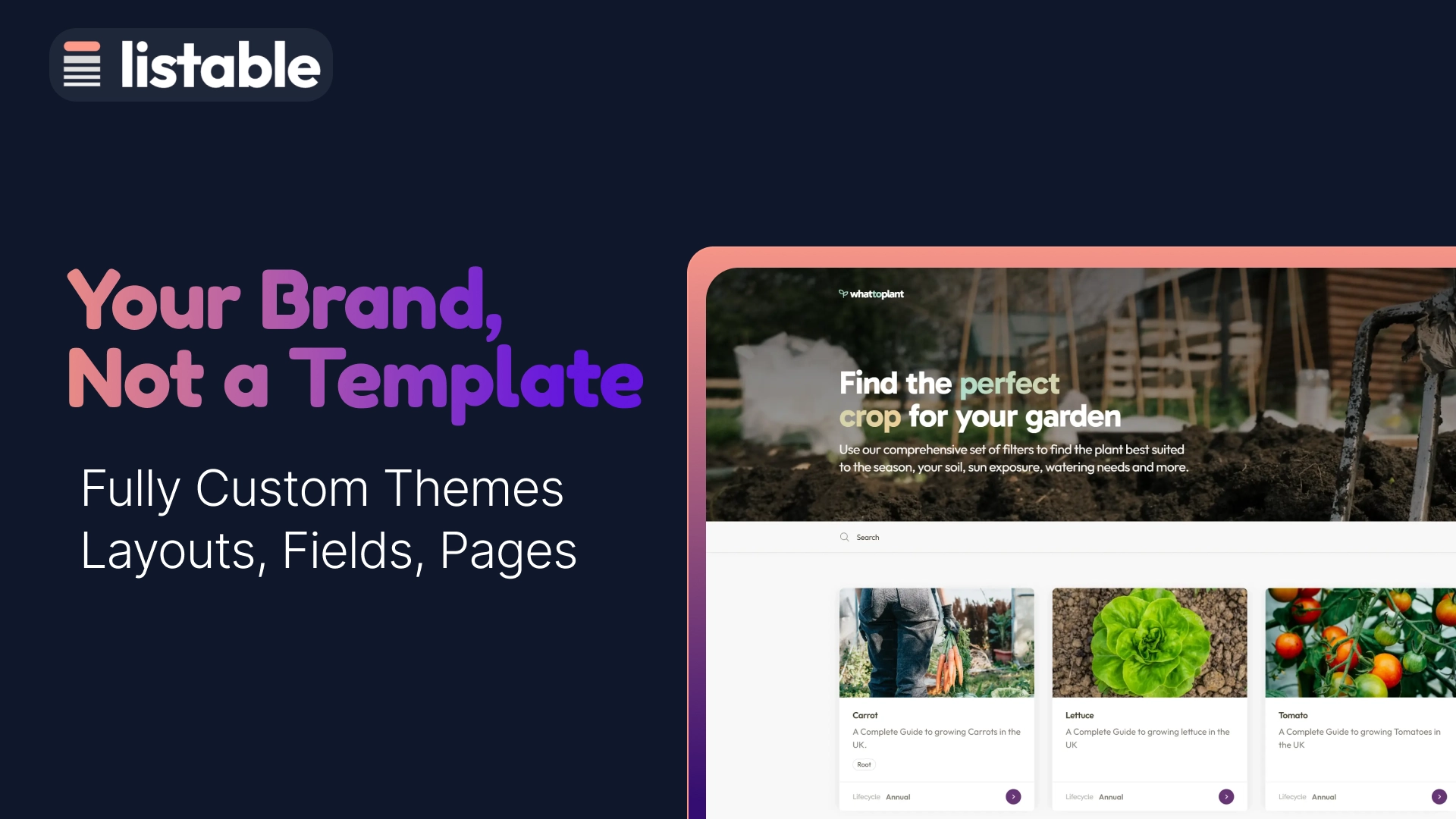 - Pick from multiple layouts optimized for different data types like job boards, product catalogs, you name it