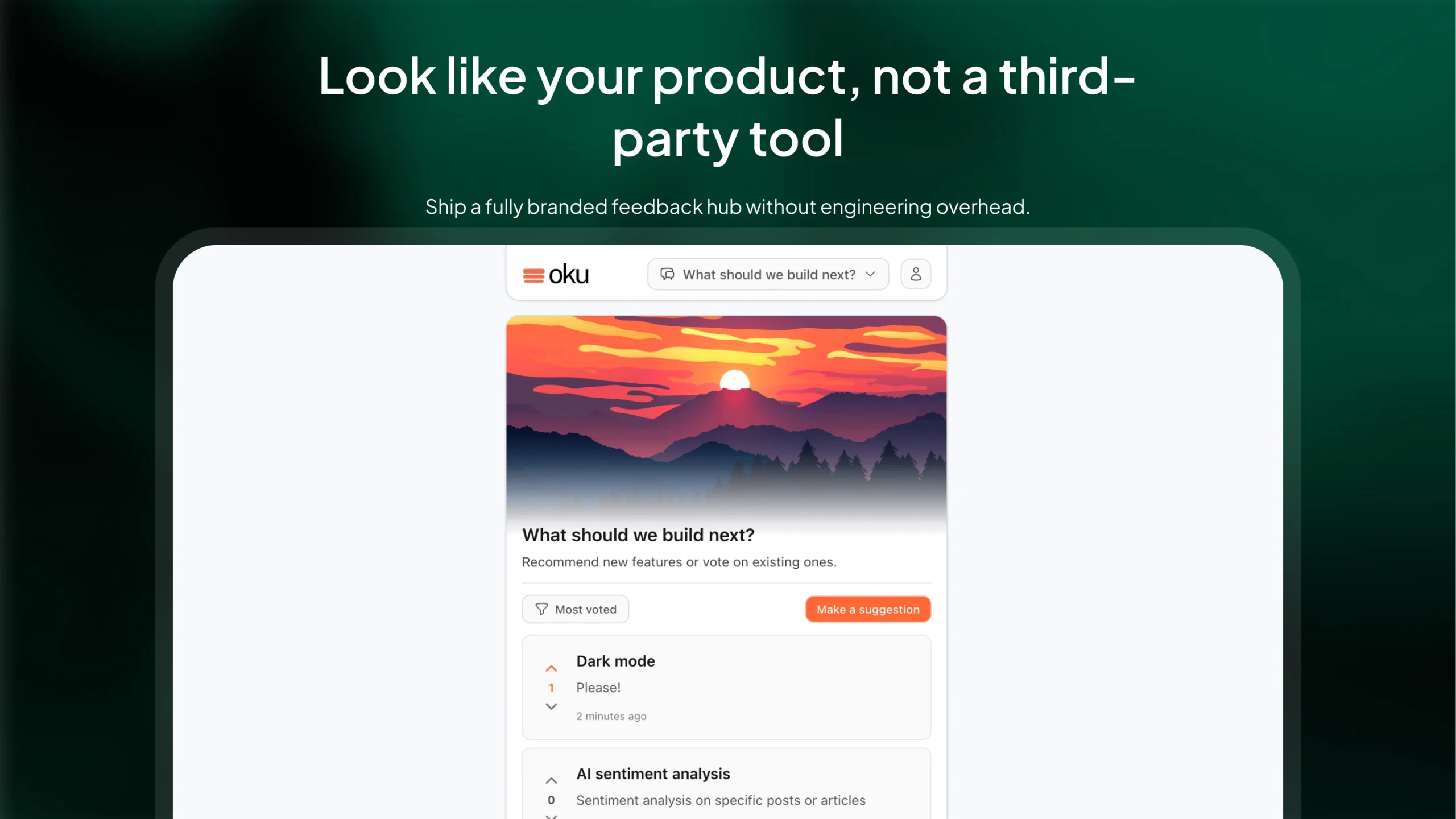 Feedback boards with AI clustering, roadmap updates, embeds, SSO and more.