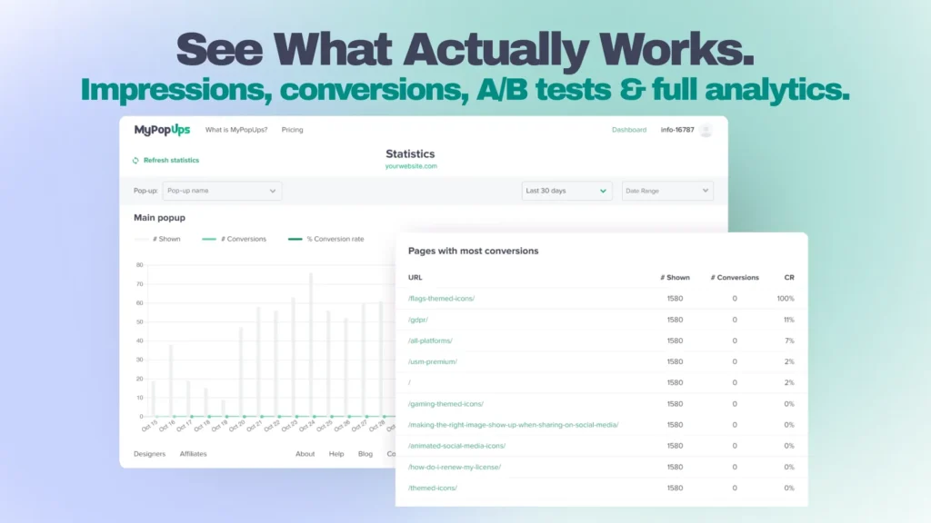 No more guessing which popups are working. MyPopUps gives you the data to double down on what converts and ditch what doesn’t.
