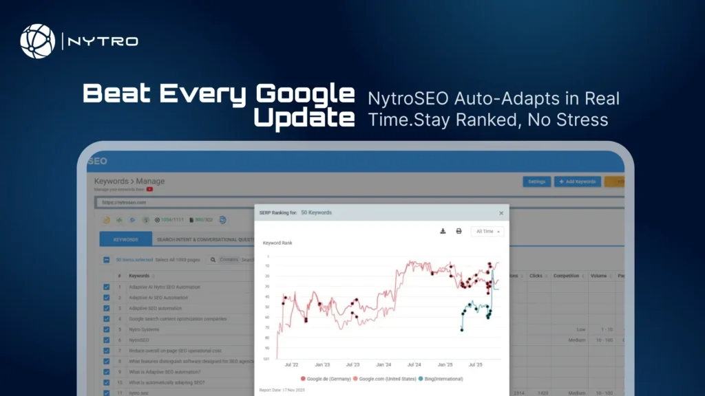 NytroSEO automatically generates AI-powered meta tags based on user search intent and adapts to algorithm changes, so your website stays optimized 24/7 without the manual grind.