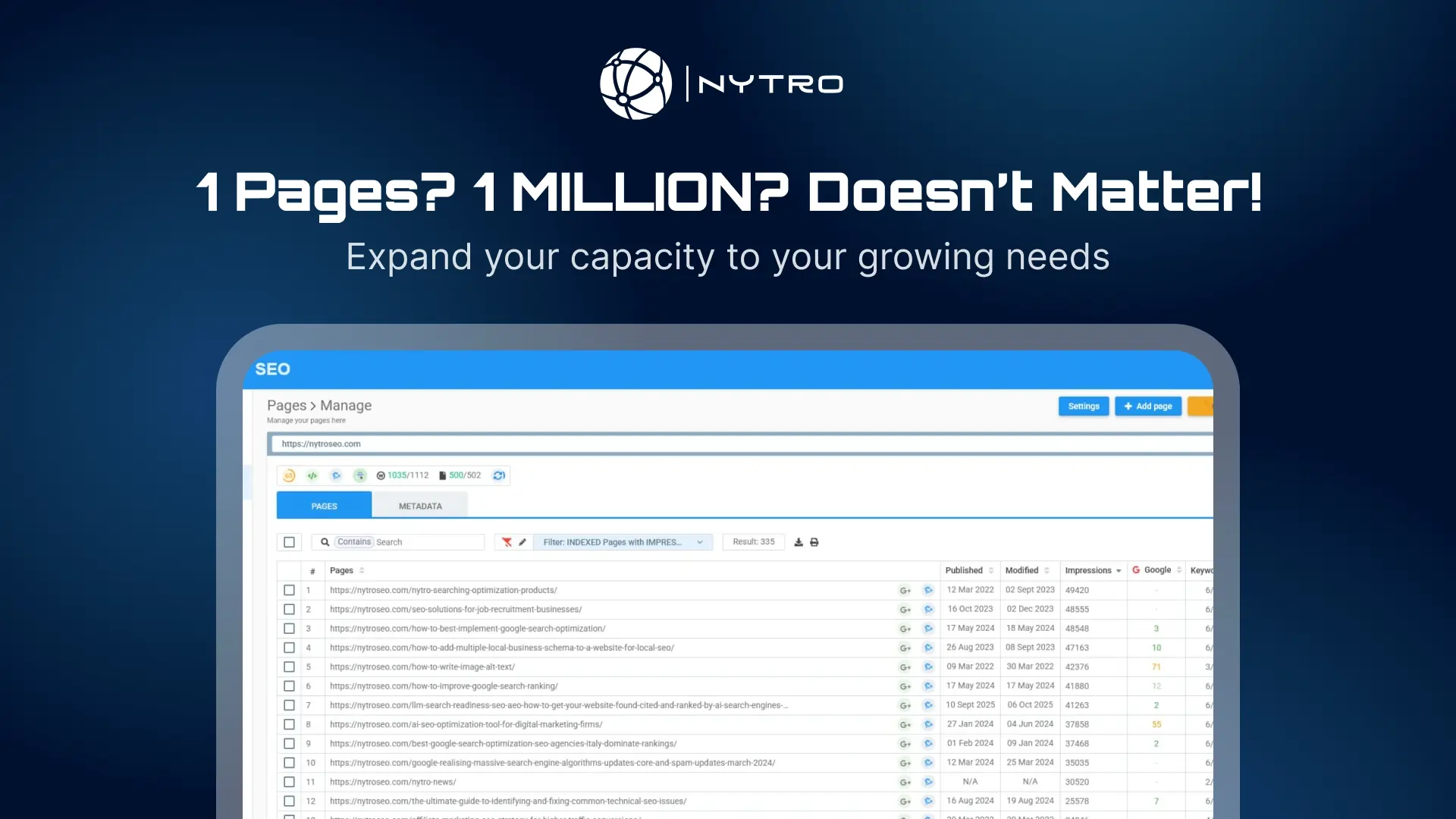Whether you’ve got a website with 1 pages or 1 million, NytroSEO can handle it