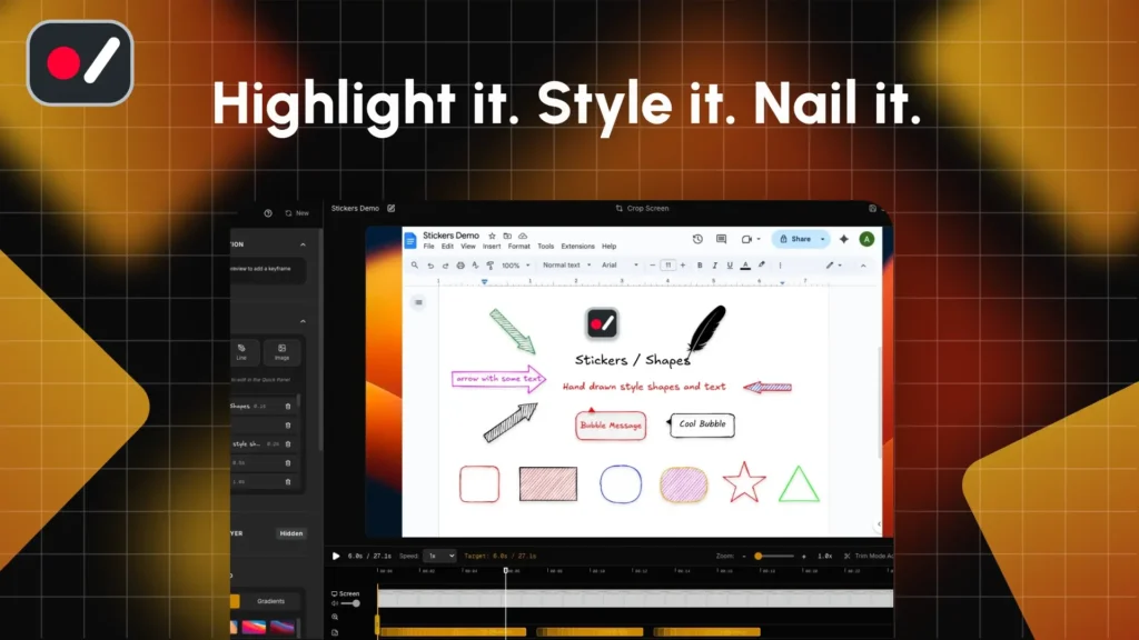 Slapping a blurry red circle on your screenshot isn’t communicating, it’s apologizing. Screentell’s sticker system lets you highlight what matters without making your video look like a ransom note.