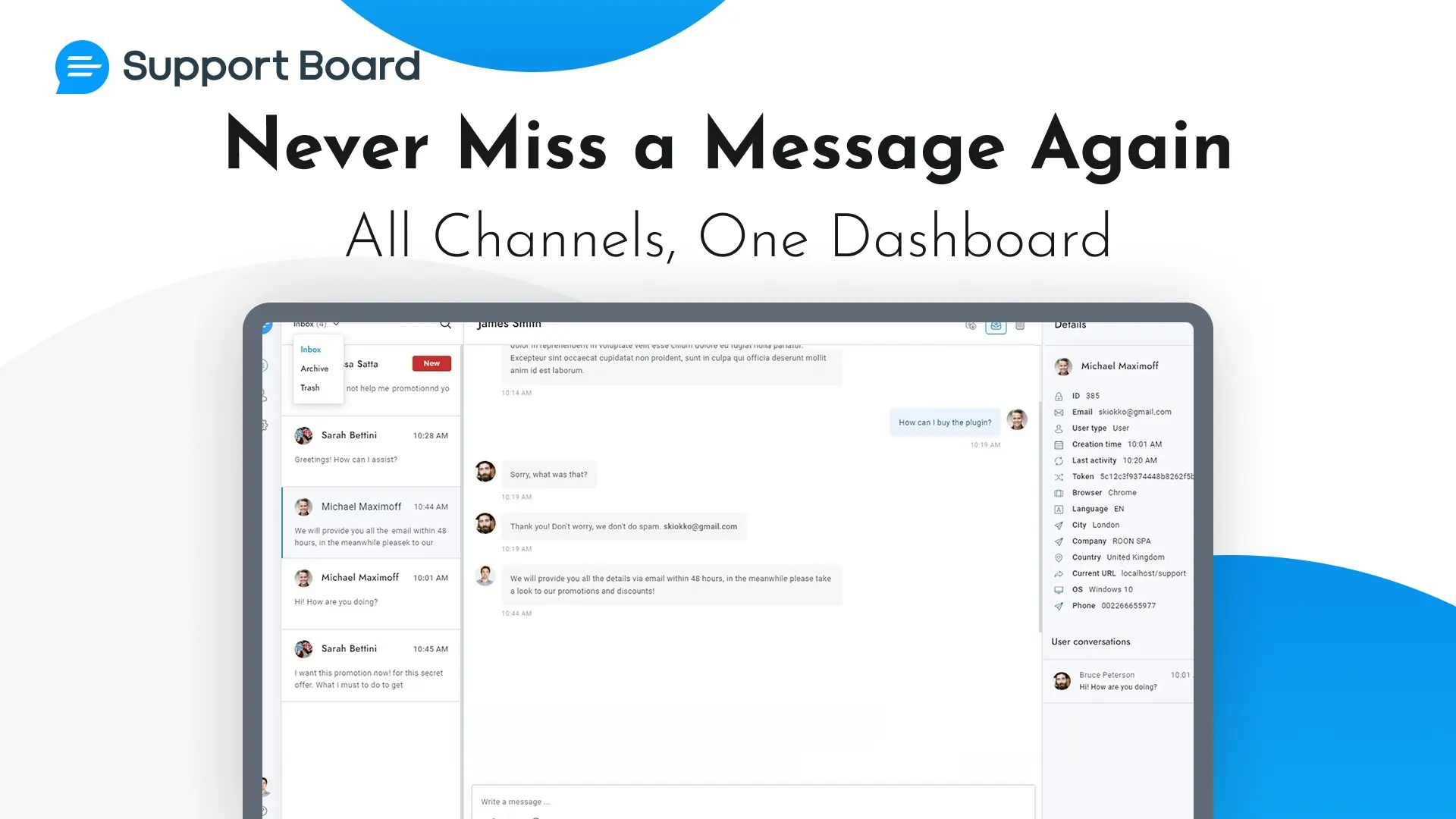 Support Board brings together every customer touchpoint so your team never misses a beat.